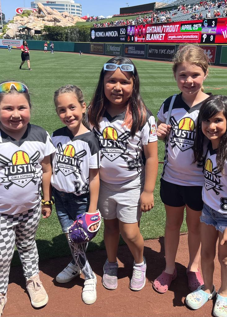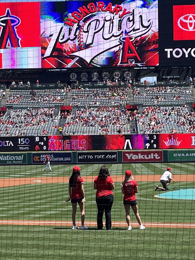 Our then president, Wendy Joe threw out the first pitch and 12u player Mia Mobraten announced the Angels lineup! We had an incredible day.